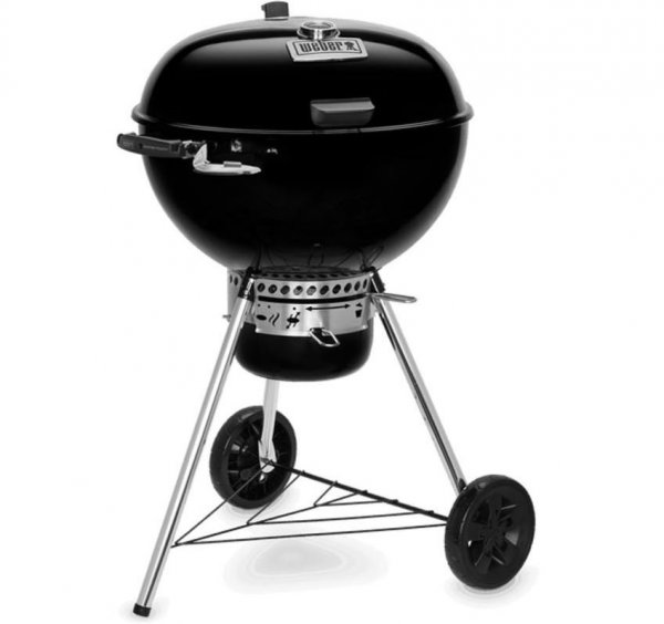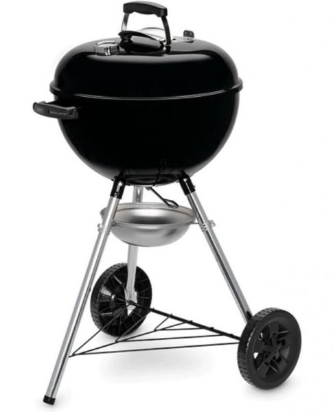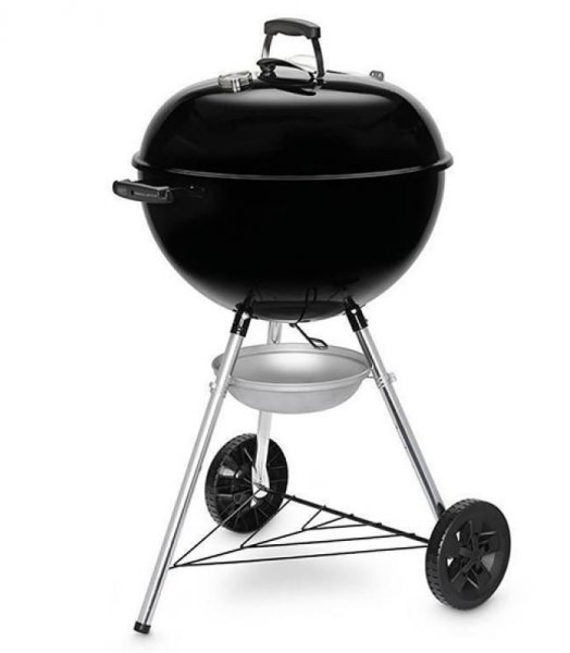 Размеры: 56 х 92 х 42 см. Варочная поверхность: диаметр жаровни 47 см. Вес: 9 кг. Особенности приготовления в гриле One-Touch-Original: Угольный гриль One-Touch-Original без термометра от фирмы Weber предлагает для приготовления поверхность жарочной решетки в 1730 кв.см., которой хватит для обустройства хорошего барбекю. Жарочная хромированная решетка позволяет продуктам жариться максимально правильно, придавая блюдам румяную жариную корочку и приятный аромат. На верхней крышке One-Touch-Original расположены вентиляционные отверстия и термометр, благодаря которым во время приготовления пищи, можно точно контролировать температуру приготовления того или иного продукта, тем самым получив максимально правильную прожарку. Также, контролю приготовления помогают два разделителя угля, что позволяет готовить продукты косвенным методом. Всё это позволит без проблем обеспечить Вас и ваших близких вкусными блюдами на барбекю. Особенности гриля One-Touch-Original: гриль One-Touch-Original черного цвета; легкое обслуживание гриля; хромированная жарочная решетка; термометр сверху крышки, для точного контроля температуры; внешнее покрытие гриля фарфоровой эмалью; рычаг для регулирования жара внутри гриля и очищения днища от золы; контроль брикетированного угля благодаря дозатору; удобная чаша для золы(съемная); колеса для перемещения гриля в нужное место. Почему стоит купить гриль One-Touch-Original? Гриль Weber One Touch Original - это гриль, который используется для организации барбекю-пикника. Сам гриль изготовлен из износостойких прочных материалов, что позволяет уберечь его от износа очень долгое время. Для перемещения гриля имеются прочные колеса, устойчивые к атмосферному влиянию. Удобство, которое заложено в данный гриль инженерами компании Weber, позволит повару без проблем готовить любимые блюда. Система контроля жара внутри гриля и очищение его от ненужной золы, делает точный контроль приготовления блюд. Термометр для контроля температуры приготовления продуктов в середине котла, станет незаменимым атрибутом повара. На любом пикнике гриль One-Touch-Original от Weber, станет незаменим и подарит много вкусных блюд.