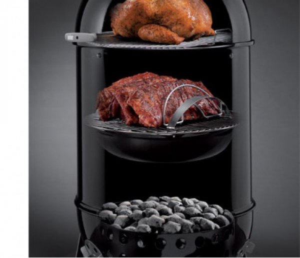 Размеры: 48 х 48 х 104 см. Варочная поверхность: диаметр жаровни 47 см. Вес: 24 кг. Особенности приготовления в коптильне Weber 721004: Коптильня Weber 721004 представляет собой двухуровневую камеру для копчения. В середине коптильни, под нижней решеткой, расположен резервуар для воды, что позволяет поддерживать нужную температуру копчения. Благодаря водному резервуару, приготовляемая пища сохраняет привлекательный вид продуктов, их сочность и нежность. Две регулируемые решетки находятся одна над другой, это обеспечивает разнообразные способы приготовления блюд. Сверху гриля Weber 721004 расположен термометр, который позволяет установить точный контроль приготовления продуктов. Коптильня от Weber идеально подходит для копчения таких продуктов как рыба, мясо, рыбы или барбекю. Объема коптильни хватит для приготовления блюд, за один заход, на 3-6 человек. Особенности коптильни Weber 721004: коптильня выполнена в черном цвете; коптильня внешне покрыта фарфоровой эмалью; теплозащитная ручка сверху; для контроля температуры внутри, сверху расположен термометр и вентиляционные отверстия; высококачественные хромированные решетки; дверка для добавления угля в коптильню; емкость для воды обеспечивающая правильно копчение продуктов; устойчивые стальные ножки. Почему стоит купить коптильню Weber 721004? Коптильня Weber 721004 - это универсальная небольшая коптильня, которая сможет за одну загрузку, приготовить блюда для 3-6 человек. Коптильня выполнена в черном цвета, она не только легко украсит ваше поместье, но ещё и приготовит много вкусных копчёных блюд. Всё в коптильне Weber 721004 сделано для того, чтоб упростить процесс копчения, это дверка для добавки топлива, термометр и вентиляционные отверстия сверху крышки, емкость для воды и 2 решетки, на каждой из которых, можно приготавливать два продукта. Внешне, гриль покрыт устойчивой, к любым атмосферным воздействиям, фарфоровой эмалью. Сам же гриль, выполнен из высококачественной стали. В коптильне Вы сможете приготовить рыбу, птицу, мясо и другие продукты барбекю для копчения. Все эти возможности, дарит коптильня Weber 721004