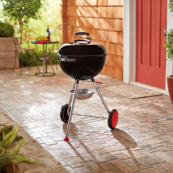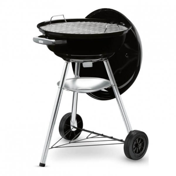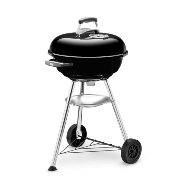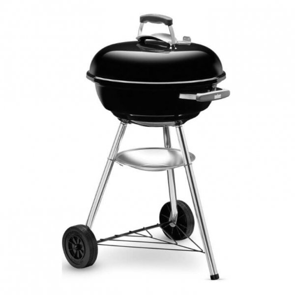 Угольный гриль Weber Compact Kettle 47cm Black 1221004 Compact Kettle – это базовая модель, которая идеально подойдет для новичка. Гриль имеет небольшую глубину котла и низкую высоту крышки. Это удобно для транспортировки, подходит для приготовления продуктов небольшого размера. Размеры: 83 x 53 x 53 см Особенности: Диаметр чаши: 47 см Вес : 9 кг Вид: Гриль Тип топлива: брикеты и древесный уголь Крышка и котел: сталь, покрытая фарфоровой эмалью Ручка на крышке и котле с теплозащитным экраном Хромированная решетка Изолированная ручка для вентиляционного отверстия: из алюминия Вентиляционные отверстия в котле и крышке: простое регулирование температуры Съемная чаша для золы Прочные колеса Крючок на крышке