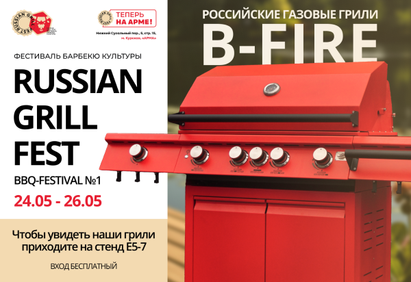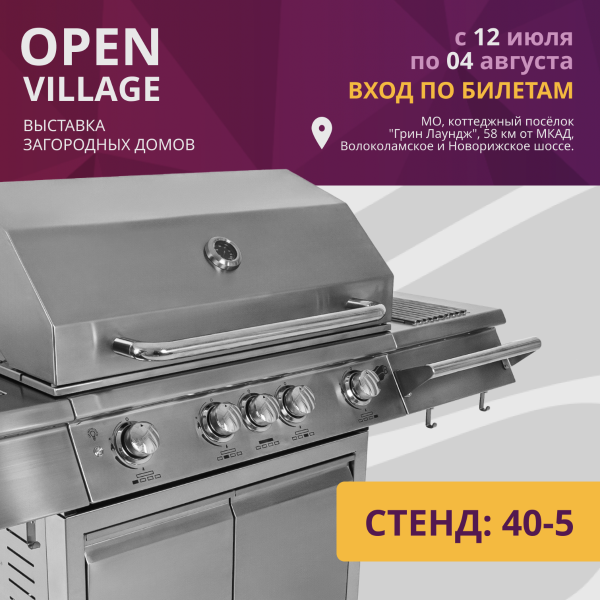 С 12 июля по 4 августа 2024 года в коттеджном посёлке “Грин Лаундж” по адресу Московская область, 58 км от МКАД, Волоколамское и Новорижское шоссе будет проходить выставка загородных домов. В рамках мероприятия мы продемонстрируем модели газовых грилей B-Fire на стенде 40-5, а Вы сможете задать интересующие вопросы нашим менеджерам и заказать понравившуюся модель! Вход по билетам, приобрести их можно на сайте организаторов выставки: https://openvillage.ru/vystavka/kupit-bilet/