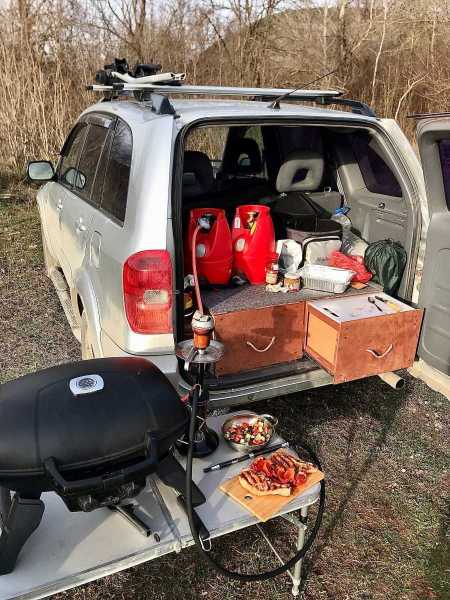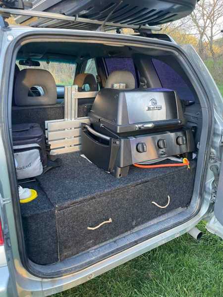 я его кладу за водительское сиденье на коврик, либо в багажник, по сравнению с другими грилями он занимает мало места, и очень легкий