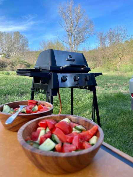 добавлю, что касается сборки и разборки ножек, то занимает у меня это 1 минуту. И на ножках он стоит очень уверенно и устойчиво. Так же можно не доставая ножки просто поставить гриль на стол или парапет, и готовить. В общем меня его компактность устраивает, так как я сознательно пришел к таким размерам тревел гриля в машину.