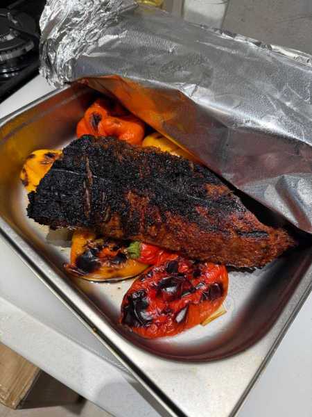 Приготовил трай тип методом обратной обжарки и запек перцы. Заодно протестировал термометр TermoPro, сравнивать не с чем, все понравилось. Под конец отвлекся на домашние дела и немного сжег отруб, на вкус не повлияло. Готовил и отруб и по этой технологии впервые, все понравилось. Пробую альтернативные отрубы, чак ролл не понравился, слишком жирный, трай тип намного лучше, но все равно хочется попостнее. Хочу пиканью попробовать, но пока негде купить