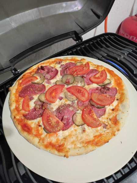 Сделал пиццу. Получилось очень хорошо. Разогрел до 260, с камнем почему-то не поднималась больше температура или я не вытерпел просто)) 12 минут она стояла, пропеклось идеально, в следующий раз попробую щепу в фольге ещё подкинуть, чтобы привкус дымка был. Вопрос ещё: что за штука на цепочке привязана к грилю? В инструкции не нашел инфы