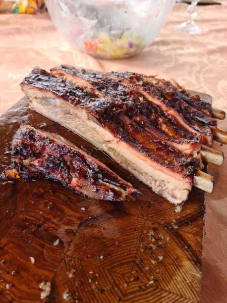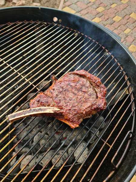 7. Попробовал рибай от местного производителя мяса сухой ферментации. Весьма недурно. Пока цена 2т.р./кг. Но видимо, не надолго... Делал "обратным" методом. Сначала на непрямом жару до 54 град., с последующей обжаркой на прямом. Получилось. Прошу пардону, но в разрезе сфотографировать не успел...