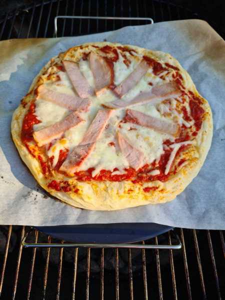 3. Первая пицца. То есть, вообще первое мое произведение из теста. В смысле, второе. Первое за 20 минут до этого - "Маргарита". Но ее сфотографировать не успел. Все получилось. Только понадобилось 15 минут держать до готовности при 275 град. В видео, по которому делал - 7 минут. Х.з.