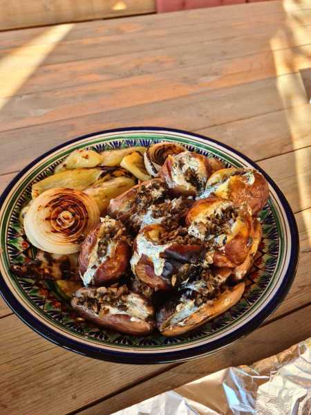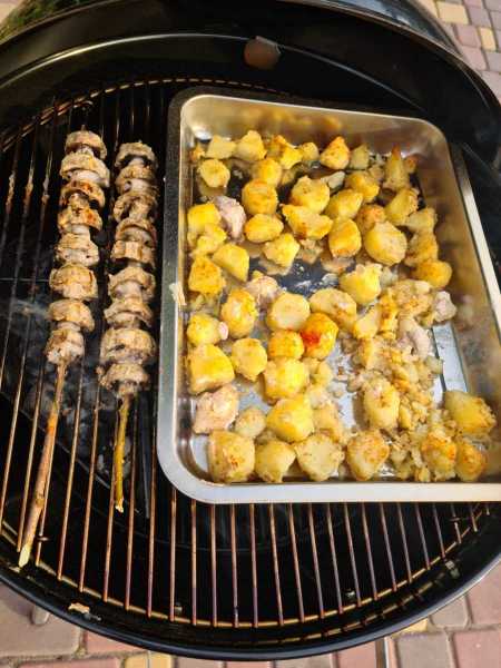 Не выходной. Но не мог не потратить время на освоение гриля для приготовления ужина. Картоха с грибами и десерт - яблоки и инжир томленые в тростниковом сахаре. Картофель получился как в рецепте - рассыпчатый внутри с хрустящей корочкой.