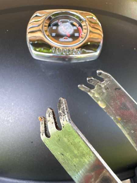 Приобрёл я вчера гриль, и купил к нему следующие аксессуары: T-образную щётку Weber - спасибо за рекомендацию @TH_ Термометр InkBird IHT-1P на аккумуляторе с гнездом Type-C Думал этот взять InkBird IHT-2PB с 2-мя дополнительными щупами, Bluetooth, он дороже всего на полторы тысячи, но он толще и шире, мне показался более громоздким, и я взял рыженький) Так же взял так же полимерный баллон Баллон HPC Research Grill Edition 12,7л и 1,5 метровый переходник к нему. Теперь понимаю, скорее всего, на нём, возможно, будет на так наглядно видно количество оставшегося газа, как на Рогаско. Зато мтильный чёрный)
