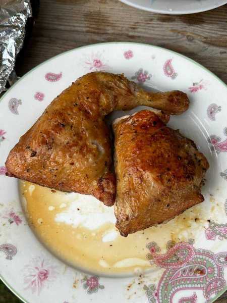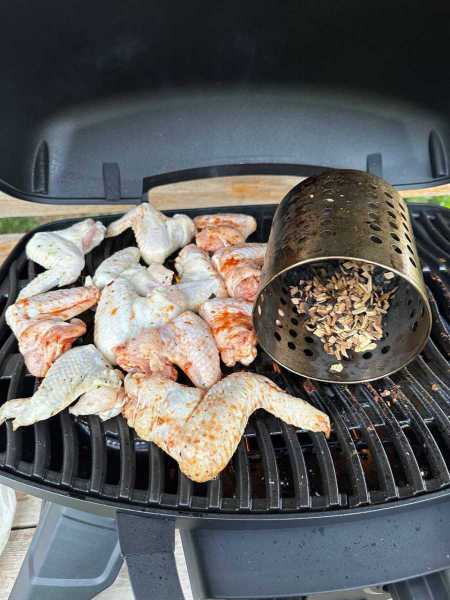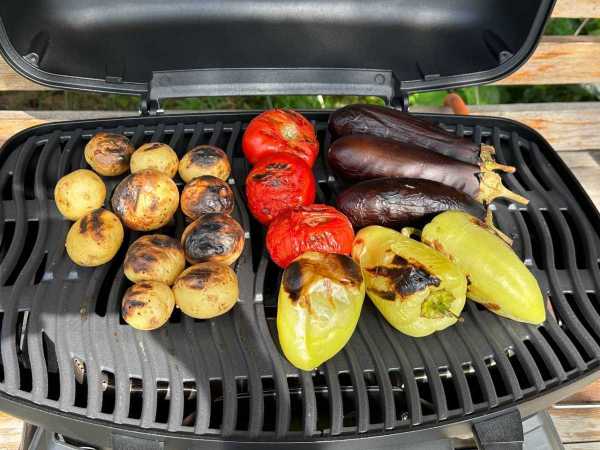 Купил я, братцы гриль. Napoleon TravelQ-285. Теперь смело могу заполнять графу "Мой гриль" 🙂 Успел закоптить окорочка на непрямом жаре, правда температура была всё равно высокая и больше получилось "подкоптить", чем закоптить. Сразу же приготовил овощи – это была мечта, овощи готовить, так как на мангале это ещё тот геморрой., Ну, и крылышки в догонку на прямом жаре с дымком. Опилки засунул в сушилку для приборов из икеи)