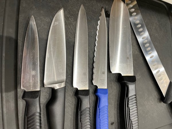 DPGR Samura не советую! Совы - норм, не из дешевых, но из наличия найти трудно - ждать придется изготовление под себя! Проф сегмент из недорогих - ICEL Домой можно много что порекомендовать - но вопрос сформулирован таким образом что не понятно, ни бюджет, ни основные виды работ 🙂 короче - нож, это инструмент! Как болгарка или ножовка - обе для работы - но функция у каждой своя! Если нужны кухонники на все случаи жизни и бюджет позволяет - то могу смело рекомендовать бренд MOYO - знаю лично основателя Дмитрия, базируются в Новосибирске - делают очень крутые кухонные ножи и комплекты, но это не ширпотреб - поэтому будут дороже сов! По точилкам! я покупал себе как то пару лет назад Профиль К03 в кастомной комплектации от TS Profil -за 2,5 года так ни разу и не воспользовался)) купил себе чефчейс 120й и забыл про заточку вообще)) единственный минус, то что она царапает боковины ножа при заточке ( на фото видно) - ножи которые дороже 5 тыр на нем не точу)) лечится элементарно - приклеиванием бархотки на щеки в точильных отверстиях- вообще не совсем понятно, почему точилку так сразу не сделать вообще в ноже главное это сталь! Спайдерки все из японской нержавейки MBS-26 еще у меня есть Тайга от Мастерсокой Медведь в стали М390 - его кстати на чефчейсе не точу, так же как и Fleischer от URALEDC Еще есть у меня филейник из Х12МФ от Медведей - очень мне нравится, разделываю им форель на стейки и на филе, за год или полтора - ни разу не точил! Вообще из отечественного производителя Медведей ( про них тут) могу смело рекомендовать, так же мастерскую Семина, (про них тут), да много кого - проще сходить на какую-нибудь ножевую выставку и потрогать понравившиеся экземпляры вживую)) Кстати, скоро ( 15 апреля) в Мск состоится ежегодная ножевая супер туса MAD RUSSIAN EVENING ( про них тут) все жалающие могу посетить сие мероприятие - сайт билеты вроде пока есть, но как показывает практика - их никогда не хватает))