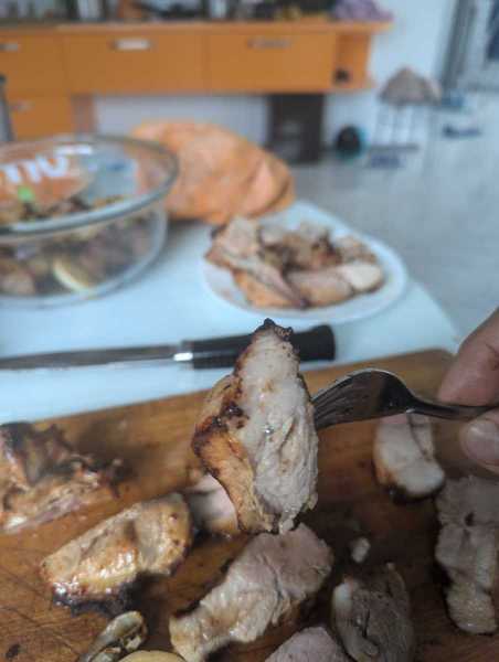 Нет сам ем, я на удаленке работаю, шашлык на террасе для себя и семьи Объем мяса зависит от того, на сушке я или на массе. Для меня просто свинина идеальна, я на ней без проблем могу набирать мышечную массу, и без приступов голода могу понижать массу, работая на рельеф, уменьшив объем мяса. При этом это единственное мясо, которое легко съедать в таких объемах. Ну есть люди, которые как коты едят, а есть такие как я, которых не прокормить! на постоянке сам съедаю 1-2кг шашлыка в день это если взвешивать в сыром, а не готов виде, и что то дополнительно жена и два сына съедают.