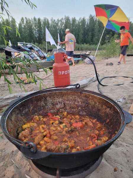 Всем здравия! Ходили тут с друзьями в поход на лодках по популярному у нас маршруту в Самаре (и не только) "Жигулеввская кругосветка", вокруг Самарской луки, по реке Волга и немного р. Уса. 160-180км по воде с 3 ночевками, одна из которых моя дача. В ветке F.A.Q. спрашивал про хранение замаринованных мясопродуктов в холоильнике, которые заранее завез туда. В итоге все норм получилось, и гости довольные остались. Приготовления разных блюд на стоянках распределили между участниками. Первая стоянка с ночевкой была на одном из волжских островов, не считая банального мяса на углях (шашлыка) одна пара участников приготовили нам оджахури. Извиняюсь, если на фотках в кадр может попасть походный бардак)