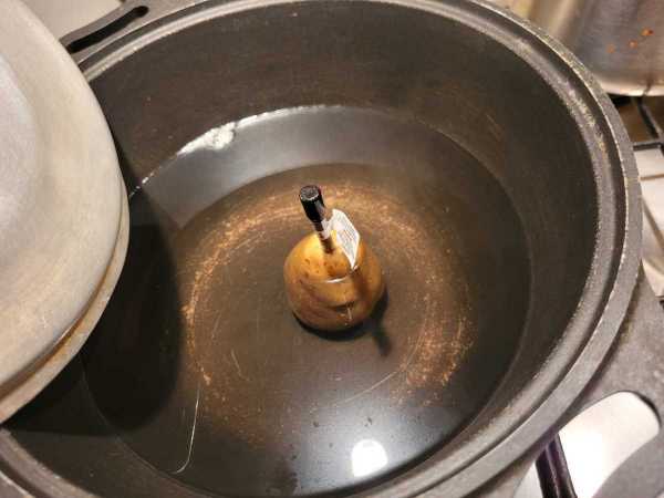 13. Наверно в этой теме что ли, небольшой отчет по принадлежностям. Читал тут разные мнения, но все же заказал на Али для ознакомления и экспериментов вертел. Так же, как и советовали, приобрел термометр, тоже с Али. Термометр с беспроводным датчиком и плюс приложение на тлф через блютуз. Датчик конечно не тонкий, 5,5мм, возможно это слишком много, но как есть. Опробовал термометр. Создавал имитацию котла гриля с крышкой). Датчик разместил в алюминиевой кастрюле с толстыми достаточнно стенками, типо жаровни, с закрытой алюминиевой крышкой, база на расстоянии 3-5м ловит сигнал (дальше не пробовал), и тлф от базы до 5-6м тоже ловит норм, а на 8+м и за несколькими стенами потерял сигнал. Может на открытом месте, без ж.б. стен, не в квартире, будет дальше ловить, посмотрим на даче позже. Воткнутый в картошку датчик в кипящей воде, в этой "жаровне" с алюминиевой крышкой. Достаточно долго поднималась температура, особенно за 75° когда примерно подималась, и долго до 98° доходила, дольше не ждал. Видимо картофан не такой уж и теплопроводный. Пробовал в этой "жаровне" под крышку на нитке опускать в кипящую воду датчик, отклик очень быстрый, (в моем понимании). Быстро доходит до 100°, так же быстро остывает если вынуть из кипятка. Данные и на базе и в приложении на тлф быстро обновлялись. Исходя из этого, сделал вывод, что через металлическую емкость должен стабильно работать, если далеко не уносить базу от датчика, и тлф от базы.