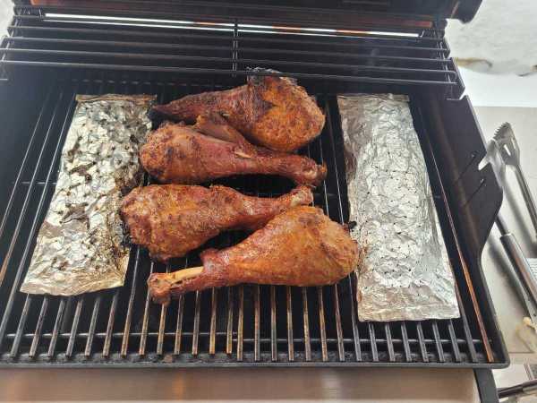 5. Еще раз всех с Новым Годом! Попробовал голени индейки приготовить, а то все колбаски да грибы)) Мне понравилось, да и семье и гостям тоже вроде. Даже можно сказать не пересушил)) хотя я люблю хорошо прожаренное. Но по краям уголки и кромки пригорело немного местами, хотел корочку сделать. Наверно надо было маринад убрать с мяса, видимо он подгорел по краям. Но в целом мне понравилось, и опыт некоторый. Готовил на непрямом жаре и с термометром. Как начинающий приму критику. 20250102_112134.mp4