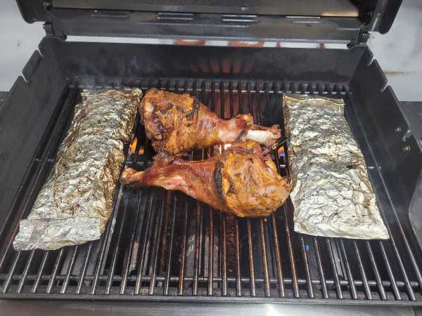 6. Уважаемые грилеведы, прошу прощения, что встреваю в деловую беседу с банальными вопросами новичка) Тема самая оживленная, как показалось) Подскажите пожалуйста по приготовлению голеней индейки на гриле газовом. Хотя бы в целом по основным методам: прямой/не прямой жар, температура гриля, температура мяса внутри (вроде 74°С как понял), время приготовления, в фольге или не в фольге и т.д. Понятно, что все индивидуально, но хотя бы на что ориентироваться? С маринадом проще, соображу что ни будь, но тоже буду рад проверенному рецептику. Имеет ли смысл на вертел насажвиать, или нет? Подумал, может несколько их на вертел симметрично вокруг оси насадить.