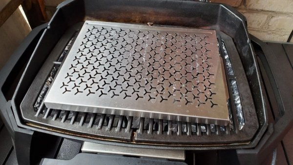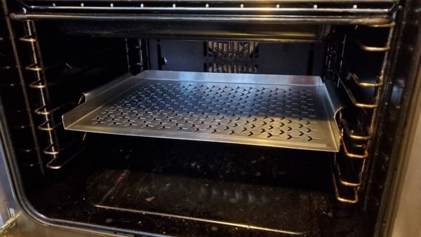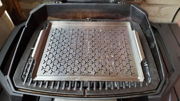 18. В общем попользовался противнями, крайне удобная штука в хозяйстве. Картошка дольками получается прям очень вкусно. Что хотел бы добавить еще, это обнаруженные в процессе использования фичи или доп возможности. Противни оказалось идеально подходят в духовку, ручки противня ложатся на направляющие в духовке, а из-за того что они довольно длинные, то противень не болтается и лежит прям как надо. Противень влезает в гриль Pulse 2000. Также я думаю, что его можно, перевернув ручками вниз, использовать как "подставку для продуктов" при готовке на гриле и создании отсекателем зоны непрямого жара. То есть сделать отсекатель из фольги, а сверху установить противень на ручки, опять же из-за того что ручки длинные конструкция выходит довольно устойчивая. Но в таком варианте еще не пробовал. Может конечно не очень получится, так как дырок маловато и вентиляция будет не такая как на решётке, но это только практическим путем можно будет установить. Фотки прилагаю