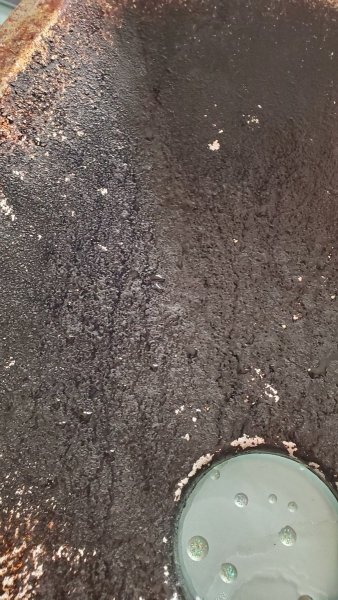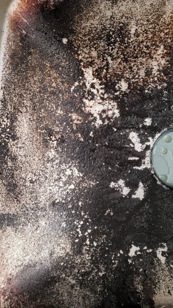 Во-во! Это становится настолько мощным покрытием, что его не берёт толком ни Азелит, ни металлическая губа. Сфоткал для тех кто все ещё надеется, что пароочиститель - это волшебная палочка, которой взмахнув, грязь вся очистится. Но нет, это не так, на темной части, я активно елозил пароочистителем, даже вон появились серебристые точки , но количество времени было потрачено большое, воды долил один полный бак, а как видно из результата не особо это помогло.