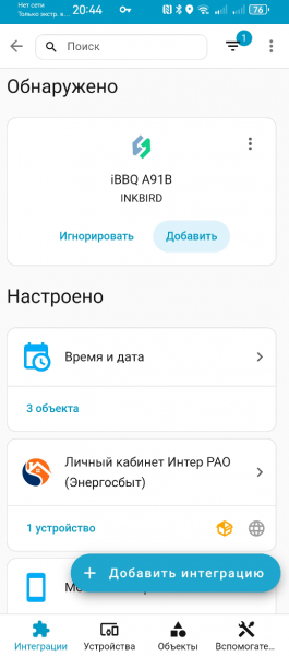 Пришел градусник. Даже не знаю, что рассказать. Все как то очень просто. Включаем Видим новую интеграцию (сама определилась я уж было полез ее добавлять) Жмакаем добавить Добавлено... Нужен еще опыт как расположились термощупы и какая автоматизация? Если да то завтра.