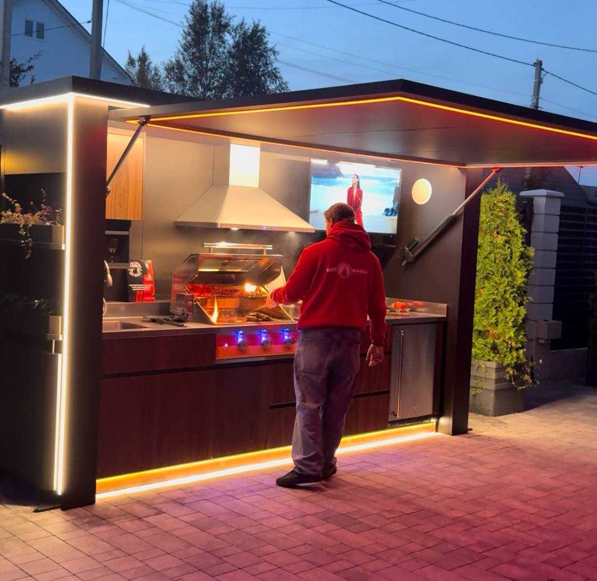 1. Рады приветствовать читателей Гриль форума! В данной статье хотелось бы рассказать о гриль-зонах, которые мы производим сами уже более 11 лет. Расскажем, как начинали и что делаем сейчас, о подводных камнях и планах на будущее. Идея начать производить гриль-зоны возникла у директора и основателя бренда Антипина Дмитрия Николаевича. Изначально в компании делали простые мангальчики, мы их в шутку называем «могильными оградами» из-за визуальной схожести. Несмотря на простоту, изделие пользовалось спросом, особенно когда мы подарили один такой фуд-блогеру Друже Обломову и заказы полились рекой. На фоне сиюминутного успеха было принято решение развивать продукт. Так как Антипин сам дикий фанат жарить на углях, хотелось сделать что-то крутое для себя — возникла идея сделать мангальный комплекс. Первый мангальный комплекс представлял собой металлический стол с угольным грилем, боковыми стенками и вытяжкой, а по бокам располагалось два металлических столика с деревянной столешницей. Новый продукт произвёл неожиданный фурор, желающих купить полноценную уличную кухню было много, неприятным бонусом сразу появилось много конкурентов-подражателей. Было принято стратегическое решение постоянно совершенствовать продукт, чтобы конкуренты не успевали нас копировать. Следующим апгрейдом решили заменить дерево на HPL-панели. Мы постоянно на связи со всеми заказчиками и собираем от них фидбэк, заметили, что у многих дерево начинало сохнуть и трескаться — вид сильно портился и долговечность страдала. Долго думали и выбрали вечный уличный материал — HPL-пластик. Также добавили в вытяжку подсветку для удобства, а также изобрели коптильню и печь под казан. Следующим шагом модернизации продукта стало изобретение первой в России гриль-станции. Изделие представляет собой уличную кухню «под ключ» размером 3×1 метр, которая поставляется в сборе на участок или террасу квартиры. Дверца на электроприводе играет роль навеса, а также защищает внутренности в закрытом состоянии, ну и «вау-эффект» при открытии с пульта или телефона присутствует. Также гриль-станция подключается в умный дом, имеет интеграцию с Яндекс.Алисой и многим другим. Сейчас мы улучшаем то, что уже хорошо, и разрабатываем новое. Присутствуем на форуме, чтобы ещё лучше понимать, что нужно конечному потребителю, и продолжать развиваться.
