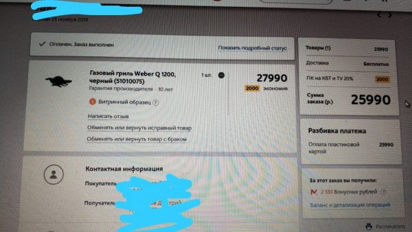 Вступление: информация для тех кто хочет сэкономить на покупке гриля, делюсь своим опытом в моем случае weber q 1200: В конце 2019 года задумался о покупке газового гриля для использования в квартире (предвижу срач по этому поводу и предлагаю вынести его в другую ветку, тут лайфхаки по покупке). После долгих консультаций и сравнений выбор пал на weber q 1200. Сначала я пытался купить гриль в известных тематических интернет магазинах, затем через энтузиастов, затем начал смотреть на сайтах маркетплейсах и везде была одна и та жа цена 27900, как позже мне объяснили это ценовая политика weber который требует у всех официальных партнеров держать один уровень цен и ни в коем случаем не делать скидок, максимум можно дать что-то в подарок. И вот О ЧУДО нашел одного "официального партнера" который продавал за 20900, но как выяснилось в последствии это какие-то левые грили на которые не будет вообще никакой гарантии ( кроме 14 дней по закону). Первый сигнал о том что у офицалов не все так однозначно с ценой поступил от озона, который при покупке этого гриля предложил вернуть баллами на свою специальную карту около 750р и я начал узнавать дальше. В тот же время гриль продавался в Москве в мвидео, но был последний экземпляр и можно было забрать только самовывозом стоил конечно так же 27900, НО в тоже время в мвидео были скидки в размере 2000р при какой-то покупке уже не помню), воспользовался цена уже стала 25900, так же мвидео начислило сверху еще 2339 баллов которые я в последствии там же потратил+ дополнительно купон на 1000р за самовывоз и еще несколько купон на новые покупки за косяки в заказе там действительно покупка вышла замороченной из-за того что гриль единственный в МСК,если будет интересно напишу отдельный пост с грилями это не связанно, просто тупняк их системы , плюс банк вернул около 250р кэшбеком. Финальная цена: 27900 - 2000 (скидка от мвидео) - 2339 (баллы от мвидео) - 250 (кэшбек банка) - 1000 (скидка от мвидео, точно не помню количество купонов, плюс пару из них были бесполезные) -1000 от мвидео за самовывоз гриль weber q 1200 обошелся мне в 21311 рублей. P.s. кто-то сейчас скажет да нафиг ты мелочишся из-за этих копеек, заказал бы у офицала гриль за 27900 как я, да еще аксессуаров сверху на 15000, на любимое дело не жалко.....у меня в тот момент был отпуск и четкая уверенность что этот гриль точно не стоит 27900, чуть заморочился в итоге сейчас доволен. За орфографию не цепляйтесь, я о ней не парюсь)