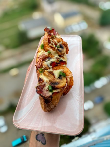 Булка, сосиска, кетчуп? 🌭 Это не про меня… Хот-дог можно превратить в шедевр кулинарного искусства если Вы художник как я) Встречайте брутальный и самый совершенный… Бекон Шримп Дог🤤 ✅Чистим в/м креветки и маринуем в соевом соусе с давленым чесноком и резаным перцем чили 15 минут ✅Обжариваем бекон и грибы ✅Разрезаемся булки и поливаем маринадом от креветок с чесноком и перцем ✅Кладём бекон, сверху креветки и грибы ✅Можно сверху полить остатками маринада ✅Посыпаем тертым сыром ✅Отправляем в разогретый в гриль под крышку или в разогретую духовку минуты на 4 ✅Украшаем зелёным лучком Не забываем лайкнуть и оставить комментарий за мой божественный креатив😉