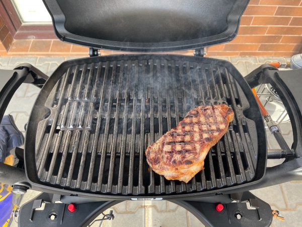 не смазываю ничем. Разогреваю гриль до 250+ градусов по Цельсию. 2 мин на одной стороне, 2 на другой, после еще по минуте на каждой стороне для рисуночка (супруга любит более прожаренный, для нее по 2 минуты, а не по 1й держу).
