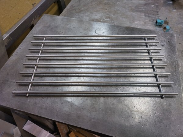 Здравствуйте Други и Подруги. Нашел в Икее еще один девайс под ребра. Есть у них в продаже подставка под горячее из нержавейки. Зовется LÄMPLIG. При небольшом тюнинге, а именно согнуть, да подрезать крайние хлысты получается неплохое подобие оригинальной подставки от Weber. Если совсем жадничать, то можно одновременно семь пластин готовить. Я же пока остановился на четырех, разницы между вертикальным расположением продукта и горизонтальным не почувствовал.