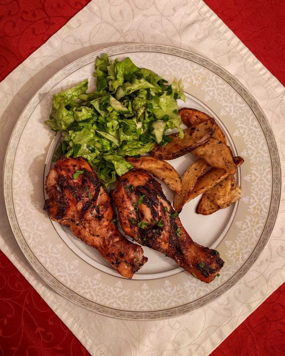 Ужин по-быренькому. Тестирую новый телефон в плане съёмки с плохим освещением. Извинити, тарелки ещё не успели отмыться от карри (куркума покрасила в жёлтый цвет). Выбираю тёмный обеденный сервиз.