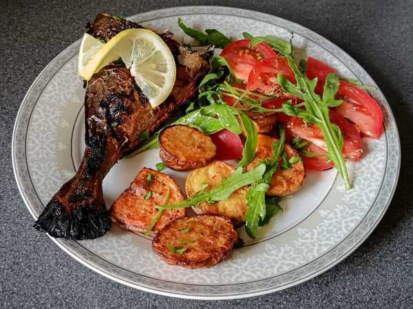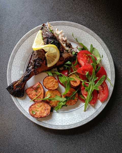 Пока идут пламенные дебаты на тему смоукэров, папажарит. В сегодняшнем меню: тунэц, картофанчик, салат. Бухлишко за кадром.
