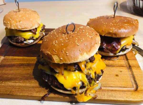 А я разве не о том-же? На 1 смэш-бургер нужно 2 котлеты, обжаренный лук и бекон. И вы даже если 1 бургер на этой малютке приготовите, а остальные собравшиеся будут на вас смотреть пока вы едите? )
