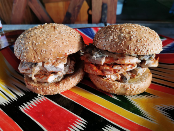 В эти выхи для разнообразия решил попробовать пофастфудить.. ) По рецепту от Ивана (МаэстроBBQ) сделал шаурму из скумбрии. И по рецепту от Сергея (Грильмаг) бургеры с курицей и грибным соусом. Заполировал Аджапсандали.. ) Выглядит может и не казисто, но вкус бомбический! Семейство было в восторге!-