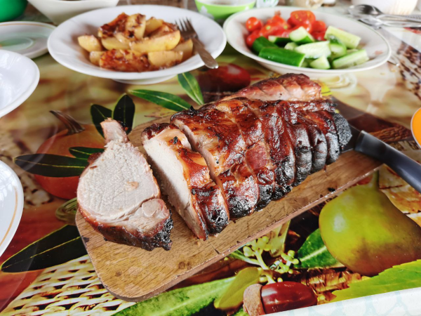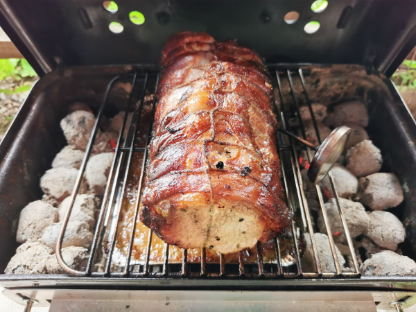 Да, это был карбонад. Но думаю разницы не будет в процессе приготовления. Корочка норм кстати и так ) Просто не на 100% равномерная. Если смогу, сделаю тоже себе расширитель для Гоши, с возможностью ставить вертел.