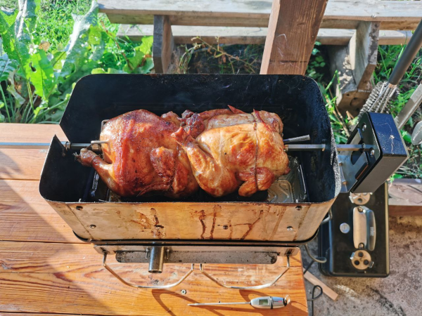 Вертел использую регулярно. Такой корочки без вертела не получается! (по крайней мере у меня). Кожа той же курицы получается очень вкусная, даже сын ест. А он в других вариантах кожу совсем не ест.. Думаю дело как раз в том что соки обтекают. Сравнивал, без вертела в поддоне в разы больше сока. С вертелом сока почти не вытекает..