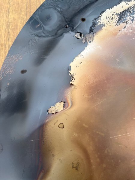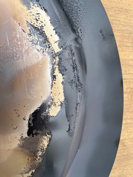 10. То ли он не захотел заморачиваться, то ли запара на производстве. Купил у бб-кастомс, как на фото первый, прямой. Доволен работой, но не совсем понял, что за нагар по периферии диска снизу. Как будто какая-то пленка облезла (чего в теории быть не может, нержавейка). Так выглядит обычно нагар от копчения?