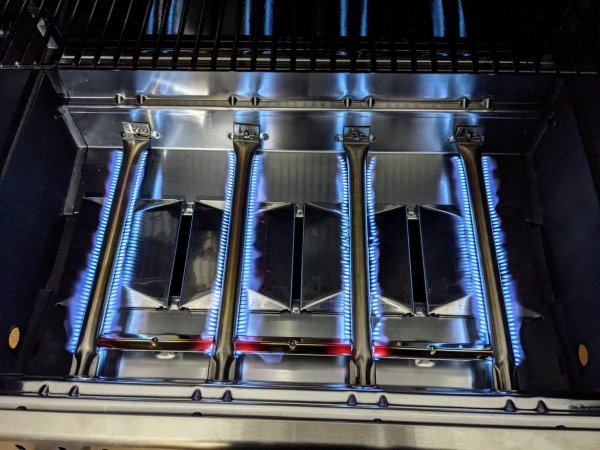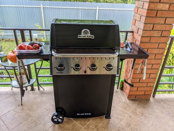 Ну что ж, привезли мне гриль ) Сборка простая, один человек справится - дел минут на 20 неспешно если. Но вдвоем лучше - весит почти 60кг в сборе. Плюсы: Отлично жарит (даже с одной горелкой на минимуме держит внутри 120С), стрелку кладет минут за 15-20 ) Большая рабочая поверхность Двусторонние решетки реально удобно использовать для разных вариантов готовки Достаточно жесткая конструкция и полки, на которые не страшно положить что-то тяжелое Высокая камера и нормальная высота креплений для вертела (сам вертел еще не купил, но видно, что висеть будет выше, чем в Вебере) Можно зажигать любую горелку - везде есть поджиг (кстати, есть держатель для спичек, что бы поджигать через специальное отверстие в боку камеры, если что-то с поджигом не то) Минусы: Полки не складные (крепятся винтом изнутри в разложенном состоянии, без винта не держат ничего) Открытая конструкция (ну и стоит дешевле, так что минус такой себе) Газа жрет нормально (но зато - мощный) - 830г/час в пике По итогу грилем максимально доволен. (Готовил часа 3 без перерыва - овощи, кукурузу, свиные ребра, крылья, грибы, баранью корейку) Брать гриль определенно стоит. Так же жизненно необходим держатель решеток (в комплекте нет, стоит 900р), да и баллона надо брать 2, так как 18 литрового баллона хватит часов на 8.