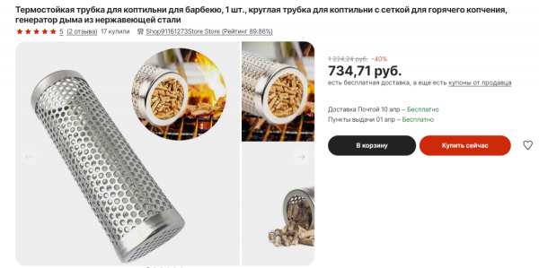 Не знаю можно ли тут ссылки на алишку, но кину всё равно https://aliexpress.ru/item/1005002347771033.html?sku_id=12000020212550605 Вот эта штука. 15 см у неё длина, хорошо влезает на решётку, можно использовать с щепой и пеллетами. Дыма, ещё раз повторюсь, даёт очень много. Если хотите фольгу - то же самое, завернуть щепу/пеллеты в фольгу, проткнуть во многих местах и положить на решётку. Минут через 15-20 всё задымится. Но опять же повторюсь дыма будет намного меньше, чем с этого тубуса.