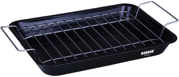 Ну, например, (ссылку не буду вставлять, не читал тут правила, так что на всякий случай) в озоне противень Bekker, Антипригарное покрытие, 34х24 см. 500 рублей цена вопроса, решетку из комплекта перевернуть и вперёд)