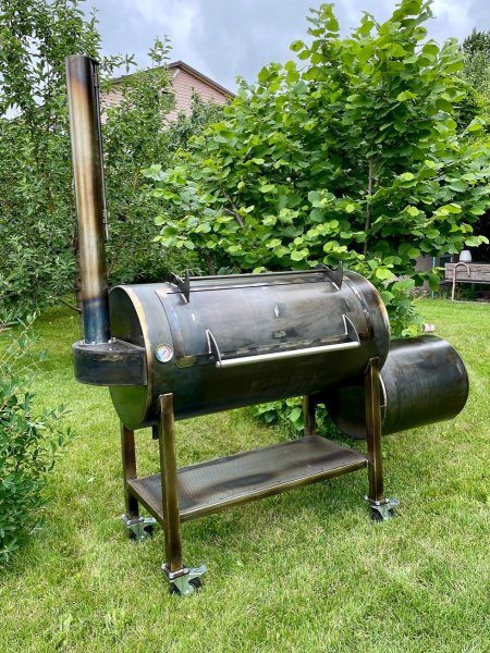 Рад вам представить смокер Asteroid A340 📌Это традиционный офсетный смокер для барбекю, предназначенный для использования в небольшом ресторане или на заднем дворе вашего дома, дачи. Мы начинаем с поиска качественной стали и оборудования промышленного класса. Ориентируемся на высокие стандарты работы и качества. В этой конструкции мы применили всё, чему научились при создании смокеров на коммерческом уровне: сделали его простым, но прочным и приятным в использовании. Этот смокер поддерживает постоянную температуру, поэтому вы можете ожидать стабильных результатов. 📌Характеристики: Длина 2100 мм Высота по дымоходу 2150 Высота по камере 1350 Ширина 700 Рабочая камера 1200х600 мм Толщина стенки 4 мм Топка 600х500 мм Толщина стенки 6 мм Решётка пруток 985х585х6 мм Площадь решётки 5820 см кв. Полка под смокером 1 термометр Дефлектор Полка для ёмкости с водой Шибер с негреющейся ручкой Запорный механизм на топке 4 колеса 125 мм Вес около 227 кг. 📌Стоимость без учета доставки Смокер с покрытием термостойкой краской 219900 рублей Смокер с покрытием воронение/патина 234900 рублей. 📌Дополнительные опции: Порт для термощупа Вторая решетка в камеру Полка перед смокером Планча на топке с крышкой Второй термометр на дополнительную решетку 📌Стоимость доставки зависит от региона и выбранной транспортной компании. Производство располагается в Челябинске.