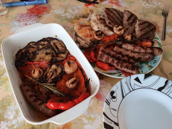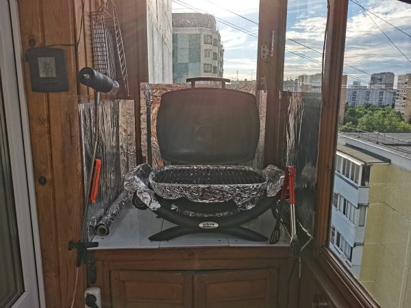 Я счастлив! 😎 РЕБЯТА! ДОРОГИЕ КАМРАДЫ! Огромное Вам всем СПАСИБО, что наставили на путь истинный (в соседней теме)! Weber Q-1400 - просто Чудо! Сегодня наготовил целую гору еды, буквально за пол часа (50 мин. с прогревом). Гриль просто чумовой! Готовил на застеклённом (деревянном) балконе с открытыми, частично, окнами. По первости немного мандражировал по поводу дымовухи, но мужественно включил в список (для теста) Чевапчичи от Мираторга, как наиболее "дымовитые". Те же бургеры, только в профиль длинные.))) В итоге, всё получилось идеально... почти... т.к. после 15-ти минутного разогрева, кинул на девственную решетку ломтики баклажанов (хоть и изрядно пропитанных оливковым маслом) + пару Чевапчичей, чтобы они в этом "маломощном" агрегате хоть как то закапали и дали аромат сгорающего жира баклажанам... МАЛОМОЩНЫЙ...?!! Ага, ЩАЗ!!! Хорошо, что через пару минут открыл крышку и убавил регулятор до середины! Баклажаны мои я чуть не потерял... (хоть и сильно были пропитаны "Экстра вёрджином"), а Чевапчичи были уже на грани.... 😲 Короче! Это ни фига не маломощный агрегат! 🤘 Это Реальная... Машина!😍 И это - здОрово! Приспособлюсь. Нажарил ещё перцев "Рамиро", шампиньонов, придал колер и аромат стейкам из любимой говяжьей вырезки и куриным грудкам из Су-вид, и (как вишенка на торте) будет ещё Пиканья от Мираторга. Но, я хочу съесть её горячей. Так что, гриль выключен и я вернусь к нему ближе к вечеру... За одно, и прогрев будучей уже в употреблении решётки опробую... 😉 Главное, что отпали мои тревоги по "дымовухе". Всё прошло в пределах допустимого. И я сам не страдал на балконе, и жена не ругалась, а только лезла помогать ))), да и соседям, как мне кажется, не особо досталось. А самое главное, что мощности не то, что мало, как я боялся (думал бледное всё будет и как со сковородки без дымка), а я ещё и пару ненормативных слов мысленно отправил тем обзорщикам с Ю-Тьюба, которые выкручивают ручку на максимум и так и готовят... Нет, ну... разве, что тонкие стейки по 3 мин. с каждой стороны... Но, овощи и изделия из фарша, явно нужно убавлять. Ещё раз спасибо всем вам, кто дал правильный совет! ❤️💯 Сейчас всё лежит в куче под фольгой, но когда пожарю, таки Пиканью, постараюсь сделать несколько фото... ))) ------------------------------------ А пока что, для всех "ущербных" в плане наших увлечений жителей мегаполисов, пару фоток моего балкона... ))) 1) Под гриль сделал постамент из плитки для ванных комнат, оставшейся от ремонта 19-летней давности, а всё остальное пространство (по периметру), максимально заклеил алюминиевой фольгой "для бань". Лежит ещё от Отца, со времён СССР. ХЗ для чего она, но наверно для тепловой изоляции... 2) Радуюсь сам себе, что не поленился выложить на дно девайса тонкую алюминиевую пищевую фольгу. Ещё пару таких готовок, и я её просто выкину и постелю другую. Как то так, пока... ))) А Пиканья ждёт...