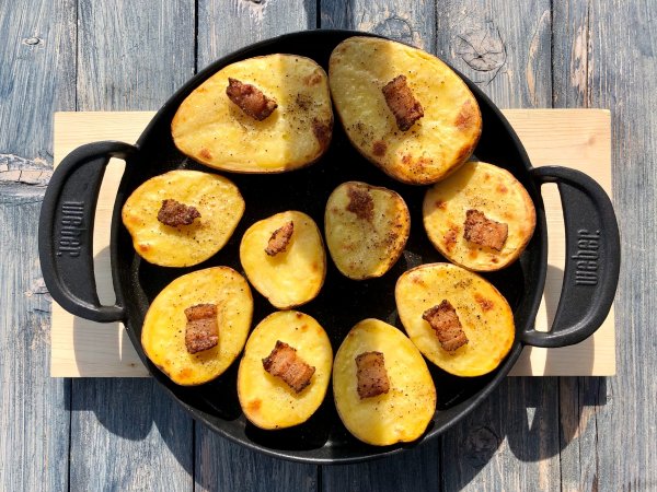 Сковорода есть просто хорошая чугунёвая... плюс подарили weberовскую - это конечно вещь! Я ее гоняю и в хвост, и в гриву... и на газовом, и на угольном! Блины на ней жарил, мясо, пиццу, ну и, в конце концов, картошку запекаю! Планча - она и есть планча... 😀 Самое интересное, что советский чугун скользит по решеткам (если не gbs), а Weber нет!