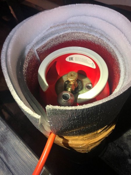 Не помню тему, но ранее здесь писал, что срочно понадобилось пожарить в -15 и я за пару минут сварганил вот такую хрень из остатков пенофоола (10 мм) и всю прошлую зиму жарил на Q2200 с баллоном на 12 литров... до - 20 особых проблем вообще не наблюдалось! Единственное условие: надо чтобы баллон был заправлен не под завязку (в случае полной заправки моментально замерзает шланг и редуктор)... в 12 литровый баллон стараюсь заправлять не больше 10 литров. Баллон хранится в тепле и выносится в импровизированном кожухе перед самым включением... и уносится после завершения всех манипуляций. Кстати, сегодня опять достал эту красоту неземную из закромов родины и 4 часа на улице при -7 жарил мясо без осложнений.