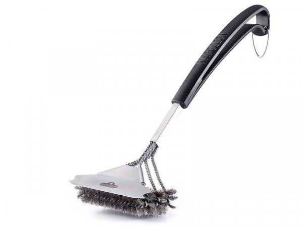 Из своего опыта, такая супер красивая фирменная и пока новая, очень функциональная щетка, умерла через пол года использования, забились и согнулись щетинки, она и сейчас чистит, но очень не очень. После, была приобретена за сотку подобная латунная щетка, она не чистит, она, прошу прощения, ху@рит. Единственный минус, она не широкая, (мне и не надо, гриль маленький) но за счет больших щетинок они не забиваются и практически не гнутся, поэтому считай вечная
