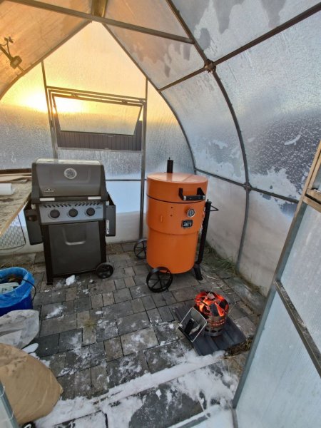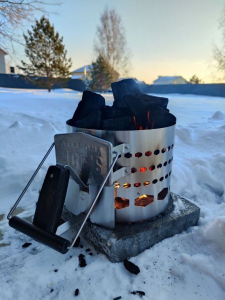 13. Когда если не 31 числа прожигать смокер? И когда если не сегодня, в -29 на улице, делать свои первые ребра Отвык работать с обычными углями, поэтому пока не понимаю корреляцию между объемом углей и частами готовки. Сколько засыпать. Буду выяснять опытным путем. Сегодня в планах тонкие ребра, часа на 3 +-, заполнил стартер + немного сверху. Эти три пластины так смешно смотрятся на площади нашего Драма... Мне кажется тут можно LAS и копчение делать в промышленных масштабах.