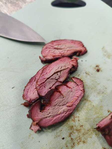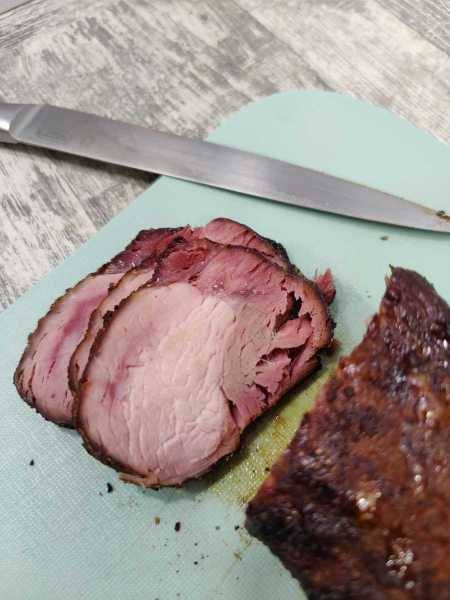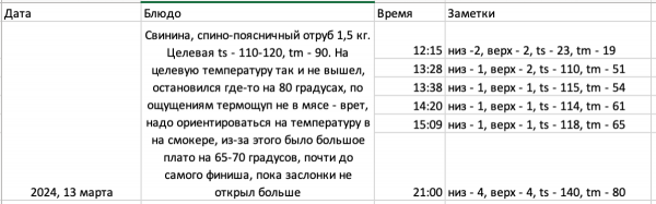 4. Делал свинину (мне кажется это карбонад) в смокере. Решил завести дневник пит-мастера, чтобы делать заметки. Пока не понял почему термощуп INKBIRD не в куске мяса сильно перевирает температуру. В следующий раз оставлю щуп только в мясе. Интересно как получится мясо теленка купленное на обычном рынке, не модные стейки/шмейки за несколько килорублей....
