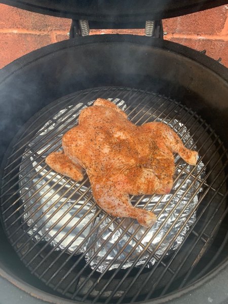 Крышка. На решетке поменьше - там продукт лежит. Где-то 165. Это керамический гриль. В нем равномернее все, чем в железном.