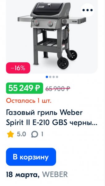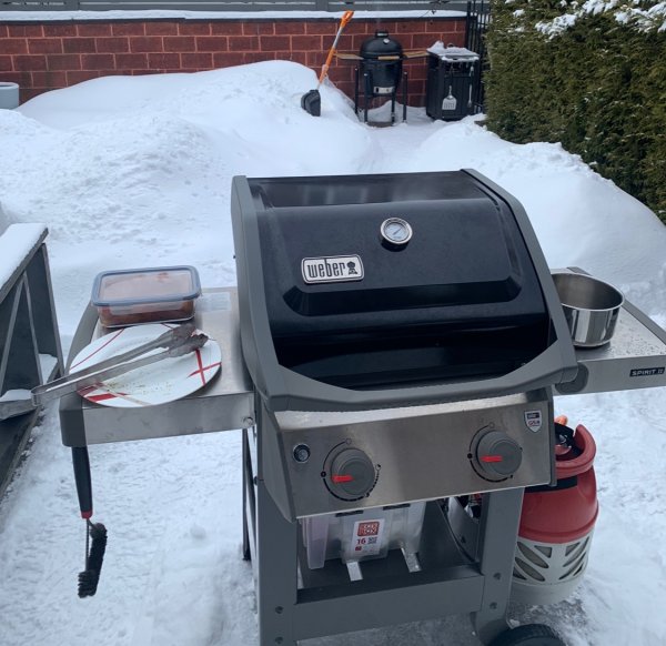 Далее, из-за особенностей небольшого пространства (что и было одной из причин покупки 2-х горелочного) устройство пришлось закатывать между негорючими предметами. Поместилось, вроде. Как растает снег, точнее скажу 🙂 Да, Наполеон (что Rouge 365, что Freestyle 365 с двумя складными столиками) компактнее, но столик и баллон Вебера вошли "как надо" и проблем не возникло (предварительно промерял, конечно). Если совсем туго с местом - лучше Наполеон. Он еще и помощнее, но как по мне, так и 7,7 кВт от Спирита вполне достаточно. В моем случае все подошло по габаритам, а разница в стоимости гриля (там тыс. 15 +\- вышло, хвала маркетплэйсам) будет потрачена на разного рода приспособления. Или на что-то еще.