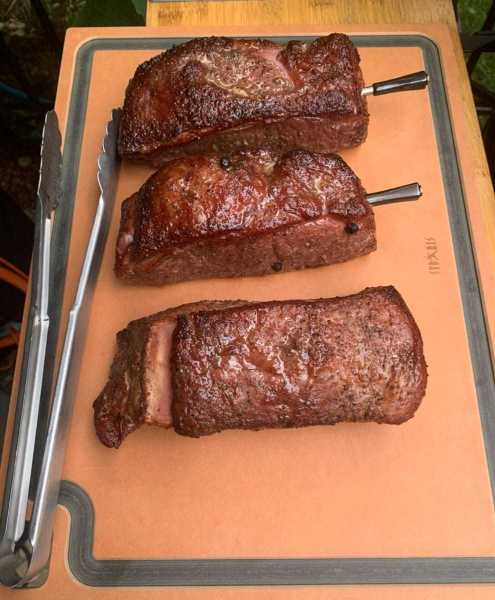 Пастрамиобразное, после 10 дней посола. Нашелся годовалый стриплоин из Уругвая в морозилке. И был приговорен.