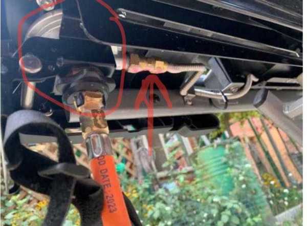 У вас конструкция с двумя редукторами, первый перед баллоном, второй родной в который вы ввинтили шланг, перед баллоном редуктор который выдает в шланг 37мбар, возможно это маленькое давление для родного редуктора и он не корректно работает. Это можно только сказать если вы сфоткайте что написано на родном редукторе. Но можно его исключить и подключить шланг напрямую, но напрямую для гриля много 37мбар, штатные редукторы в рф для напа идут 30мбар. вот это что обведено кружочком выше это родной редуктор