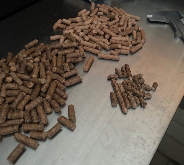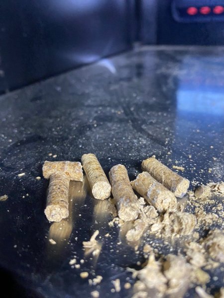 4. всё ниженаписанное это опыты на Weber Smokefire Пришли от Левона, по структуре и цвету очень напоминают оригинал, по размеру 6,5мм, но самое плохое что они очень плотные и крепкие, теперь я понимаю о чем говорили в чате GMG про страшные звуки щелчков и проталкивания пеллет, это не из-за длины, а из-за усилия ломания крепкой пеллеты. Если бы оценивал крепкость пеллеты, то Древодел длинные бук крепкость была бы 0,5, в моем случае эталон это Вебер с крепкостью 1, а дуб от Левона крепкость 2. Шнек вебера справляется с пеллетами Левона, но с трудом и со страшными звуками. я сжег 10кг длинных пеллет от Древодела, короткие пеллеты не пробовал, они тоже есть, если на коротких пеллетах от Древодела не будут образовываться воздушные карманы в хоппере, то их имеет смысл брать, если на коротких будут образовываться воздушные карманы, то я не вижу в них смысла, можно брать короткие и не заморачиваться. Повторюсь, страшные звуки не из-за длины пеллет, а из-за их крепкости. ещё один нюанс пеллет от Левона это при их проходе через шнек образуется очень крупная фракция стружки, она падает желоб и её не сдувает, она воспламеняется прям на желобе, также она может воспламеняться и на конце трубки шнека. все видео начал снимать после того как открыв хоппер увидел дым, разобрав гриль, сняв центральный фловорайзер увидел что пеллеты горят прям на конце трубки, к сожалению сам момент не снял, начал сразу убирать горящие пеллеты с трубки. По поводу того что в чате GMG обсуждают наличие стружки в пакете это ерунда, для себя понял что для Smokefire важно какое количество стружки и какой фракции образуется после прохода через шнек. после воспламенения прогнал все пеллеты от Левона и загрузил Древодел.