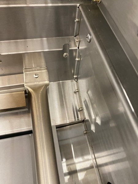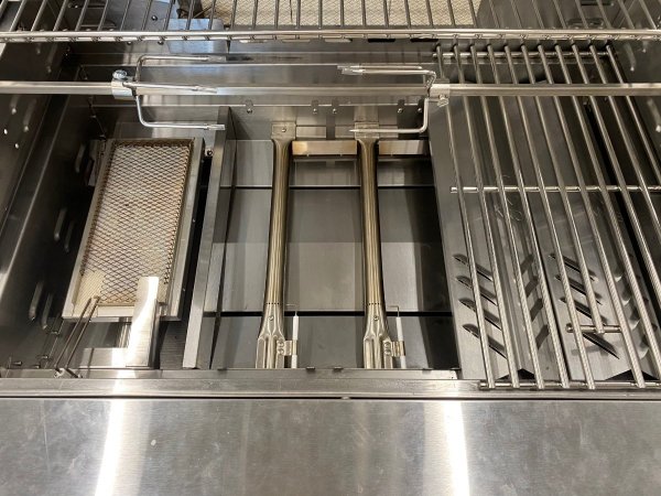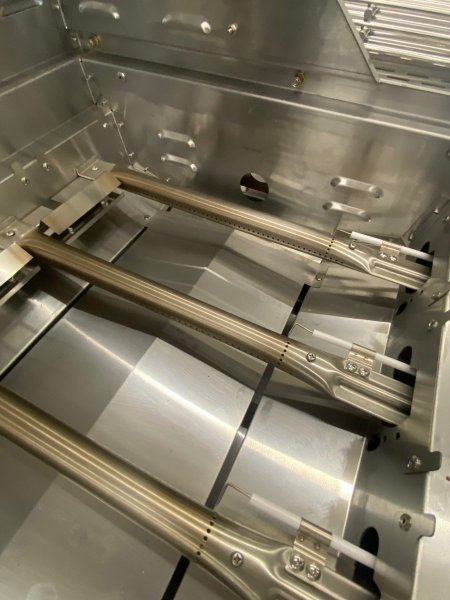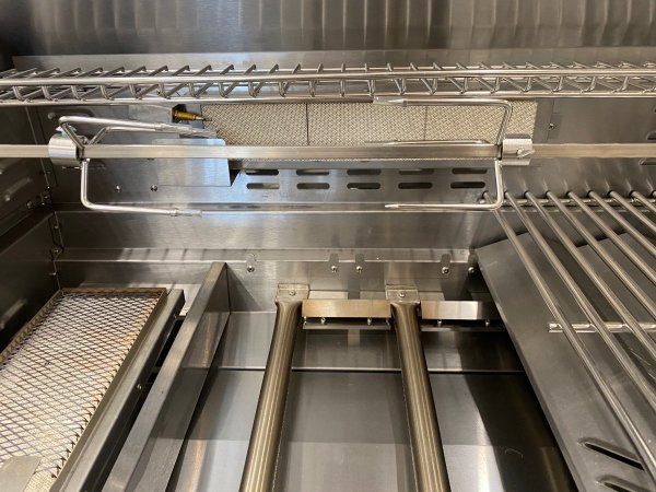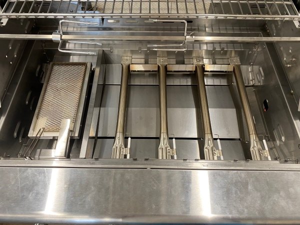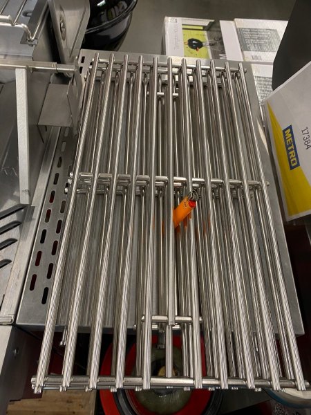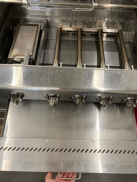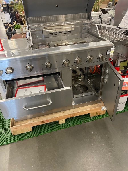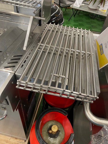 Посмотрел, решетка увесистая, такое ощущение что 10мм, правда хотелось чтобы прутья были почаще, горелки по конструкции очень похожи на Char-broil, регулировка подачи воздуха винтом, такие же вроде горелки и Антон Оливер стоят, вот они: https://m.aliexpress.ru/item/32816303075.html?spm=a2g2x.detail.seller_rcmd.3.50cb575dfbFrUd&ru_algo_pv_id=d1a6b8a9-caf3-4216-a466-b3467c090dd8&scenario=pcDetailBottomMoreThisSeller&sku_id=64720768933&tpp_rcmd_bucket_id=346780&traffic_source=recommendation&_ga=2.197143791.1322012326.1689004780-998645334.1686900348#reviews_anchor Котел на заклепках, то ли я чего-то не понял, то ли сброс в лоток-жиросборник только через щели в котле, большие куски надо будет проталкивать 🙂 жиросборник - выдвижной поддон, как на Black Angus 6 burner 🙂